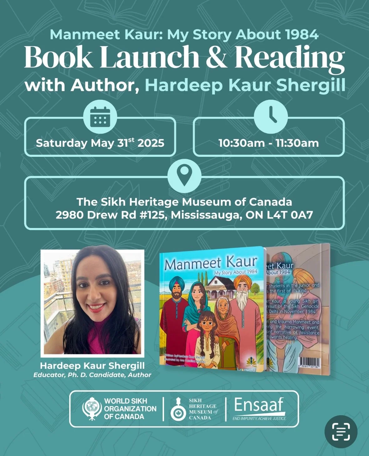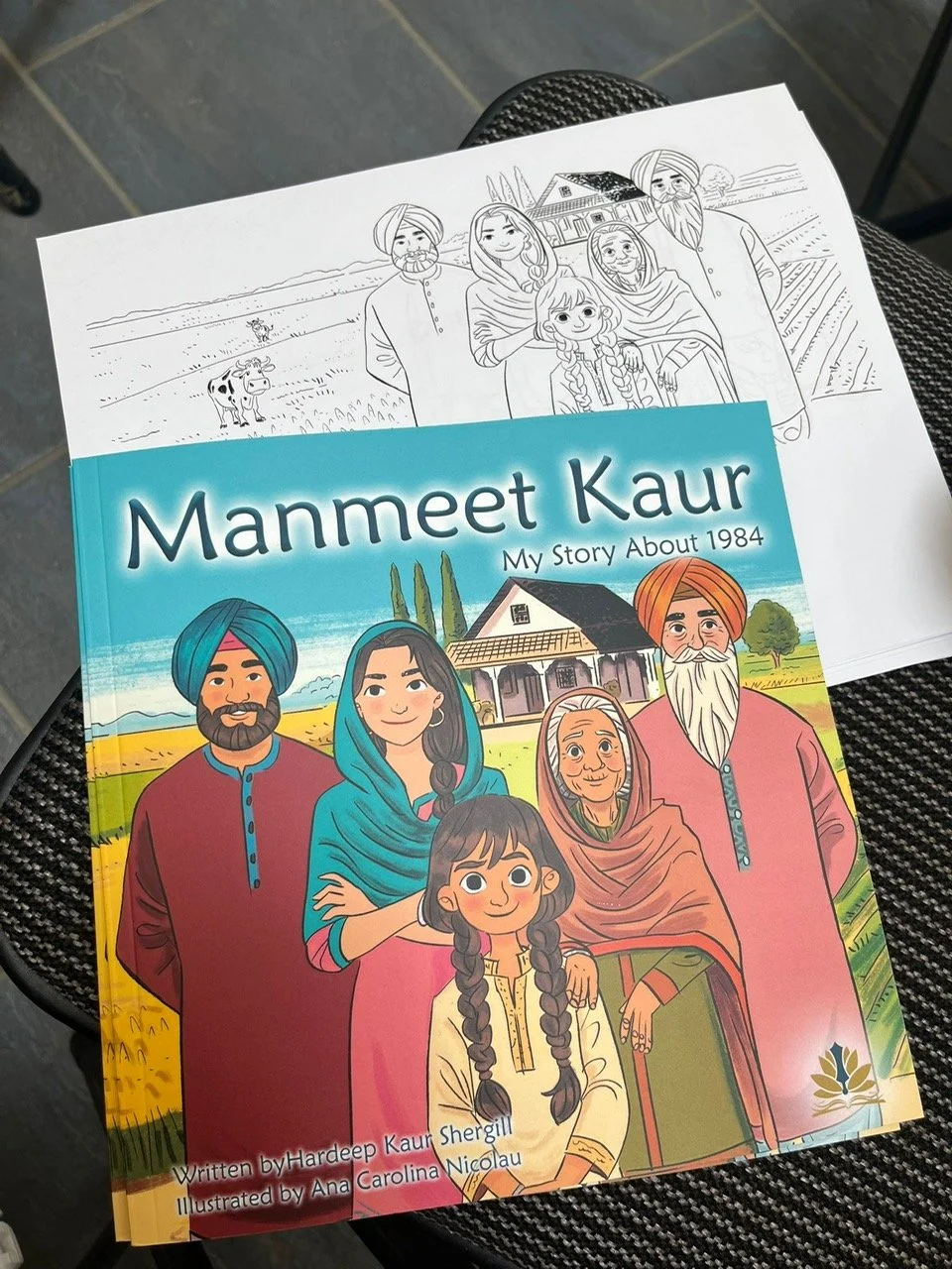 I wrote “Manmeet Kaur: My Story About 1984” in my early twenties, while completing my undergraduate degree. This beautiful story came to fruition thanks to a course I took, while completing my education at York University, located in Toronto, Ontario. At that time, I didn’t quite know where exactly I fit, as I was navigating both the Eastern and Western worlds, all while learning more about my Punjabi Sikh Indigeneity and the colonial trauma my grandparents endured by the British European powers. This produced “Manmeet Kaur: My Story About 1984”, an emotional story about a little Sikh girl who loses her father as a result of the Sikh genocide initiated by the Indian government in 1984. Although this tale is fictitious, it is inspired by true events, the horrific consequences of which, are still felt to this day, where justice has not been rendered to the victims or their families. This is an enduring story about love, hope, resilience and healing. My hope is that “Manmeet Kaur” teaches readers not only more about Sikh history and identity, but also promotes cross racial solidarity, where justice reigns.